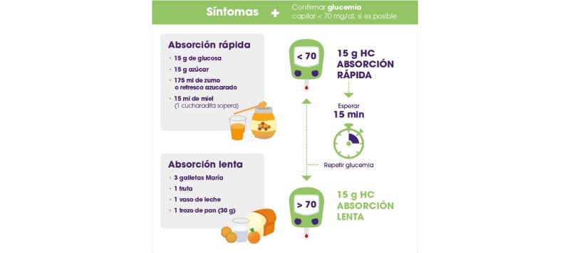 El objetivo es subir los niveles glucémicos más pausadamente para prevenir posibles recaídas. Transcurrida 1 hora, y en caso de duda, realizar un nuevo control glucémico.